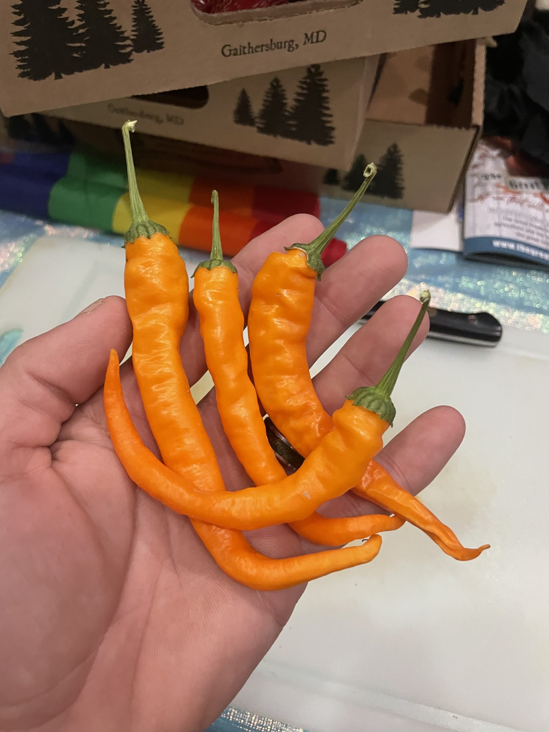 One of the ten ‘Space Pepper’ varieties! Developed in China in 1987 from seeds exposed to cosmic radiation during satellite missions starting in 1987 to induce genetic mutations for higher yields and nutritional value. Developed by scientist Jiang Xingcun.